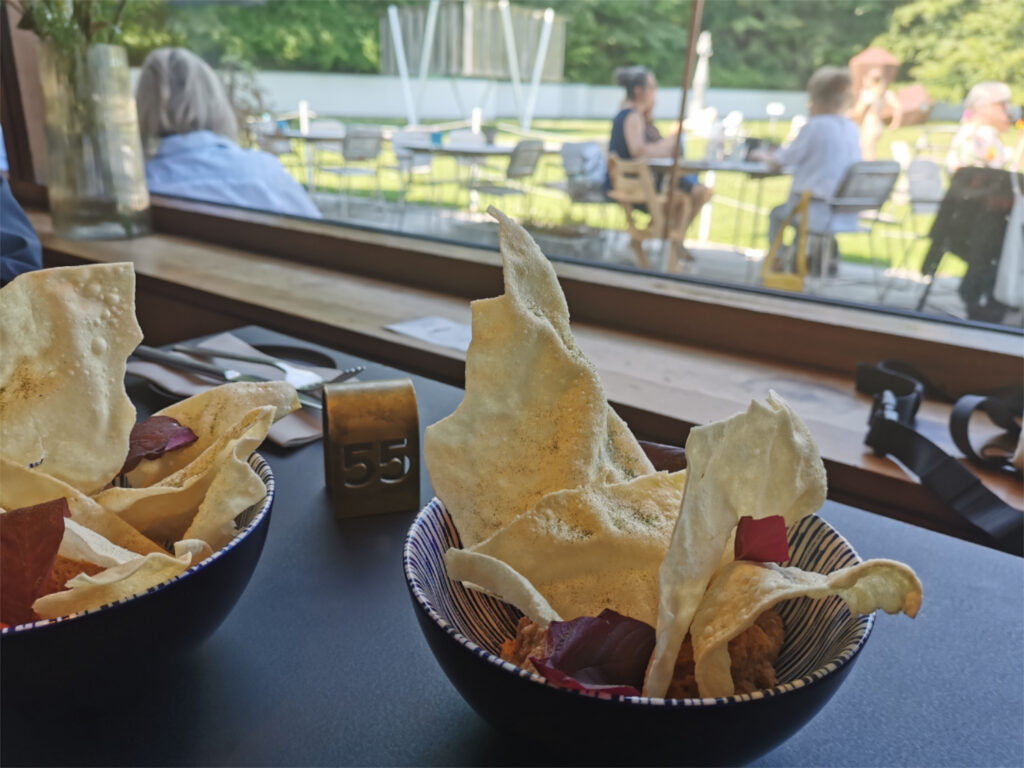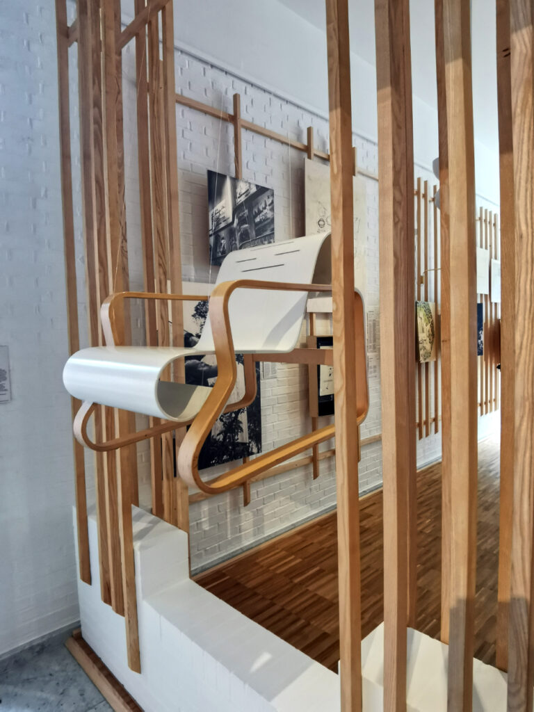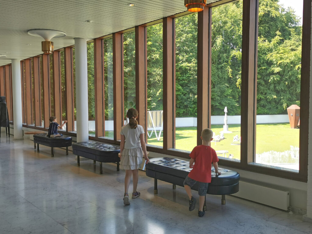 Das Kunsten, ein Museum von Alvar und Elissa Aalto (Fertigstellung 1972), kann man in Aalborg nicht auslassen. Wie die Oper in Oslo ist das Museum eingehüllt in weißen Marmor. Zur Beschreibung der Innenräume reicht ein einziges Wort: Licht. Was die Akustik für einen Konzertsaal ist, ist das Licht für ein Kunstmuseum. Mit diesem Entwurfstitel gewann das Büro 1958 den Wettbewerb. Die Ausstellungssäle haben ein sehr gleichmäßiges Tageslicht. Das wird ohne durchgehende Lichtdecken erreicht. Lichtschaufeln, geschwungene massive Betonschalen, schütten das Licht aus den Oberlichtern über die Exponate. Mein Lieblingswerk diesmal? Die Videoinstallation Working Class Hero – A Portrait of John Lennon – 2006. 25 Fans von John Lennon wurden einzeln eingeladen, die Songs seiner ersten Solo LP a Capella aufzunehmen. Die Aufnahmen wurden später zusammengeschnitten zu einem virtuellen Chor. Diesem Chor von Bildschirmen steht man gegenüber, kann in der Installation umherwandern und jedem Sänger face to face persönlich begegnen. Eine künstlerisch fotogene Installation von Papadam auf Humus gab es danach im Museumsrestaurant.