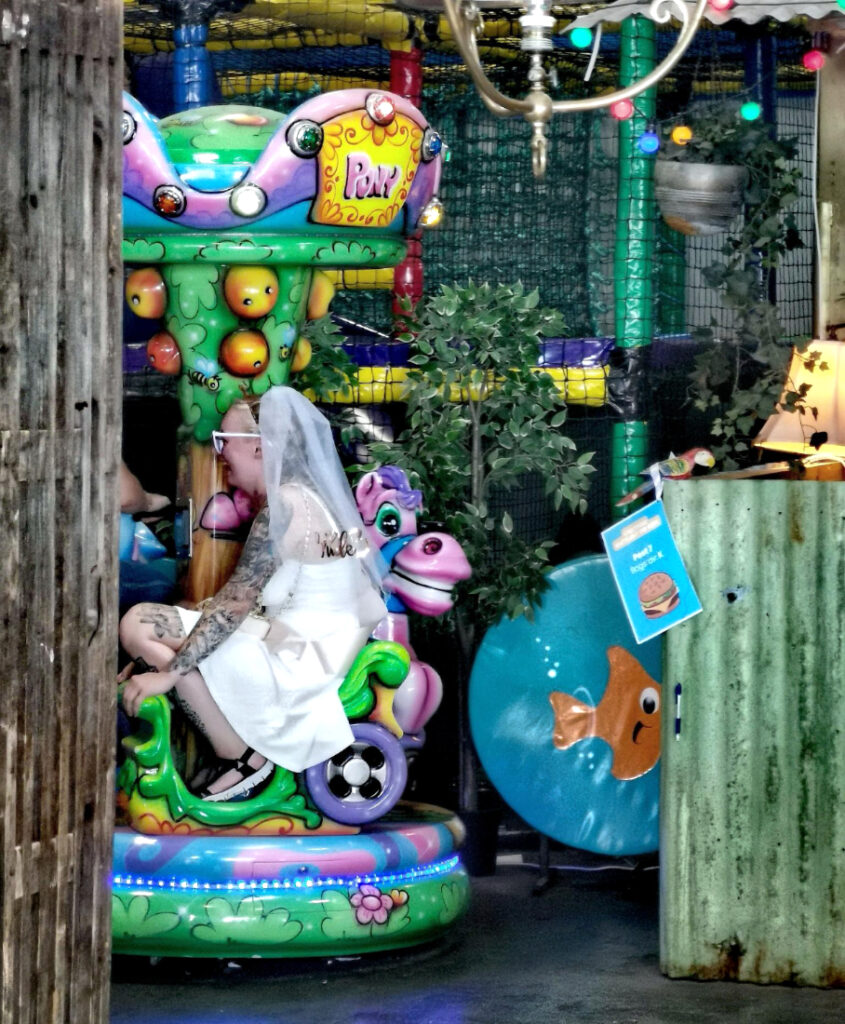 Auffällig war dann eher die Gruppe zum Junggesellinnen Abschied. Die zukünftige Braut saß irgendwann auf dem Kinderkarussell.