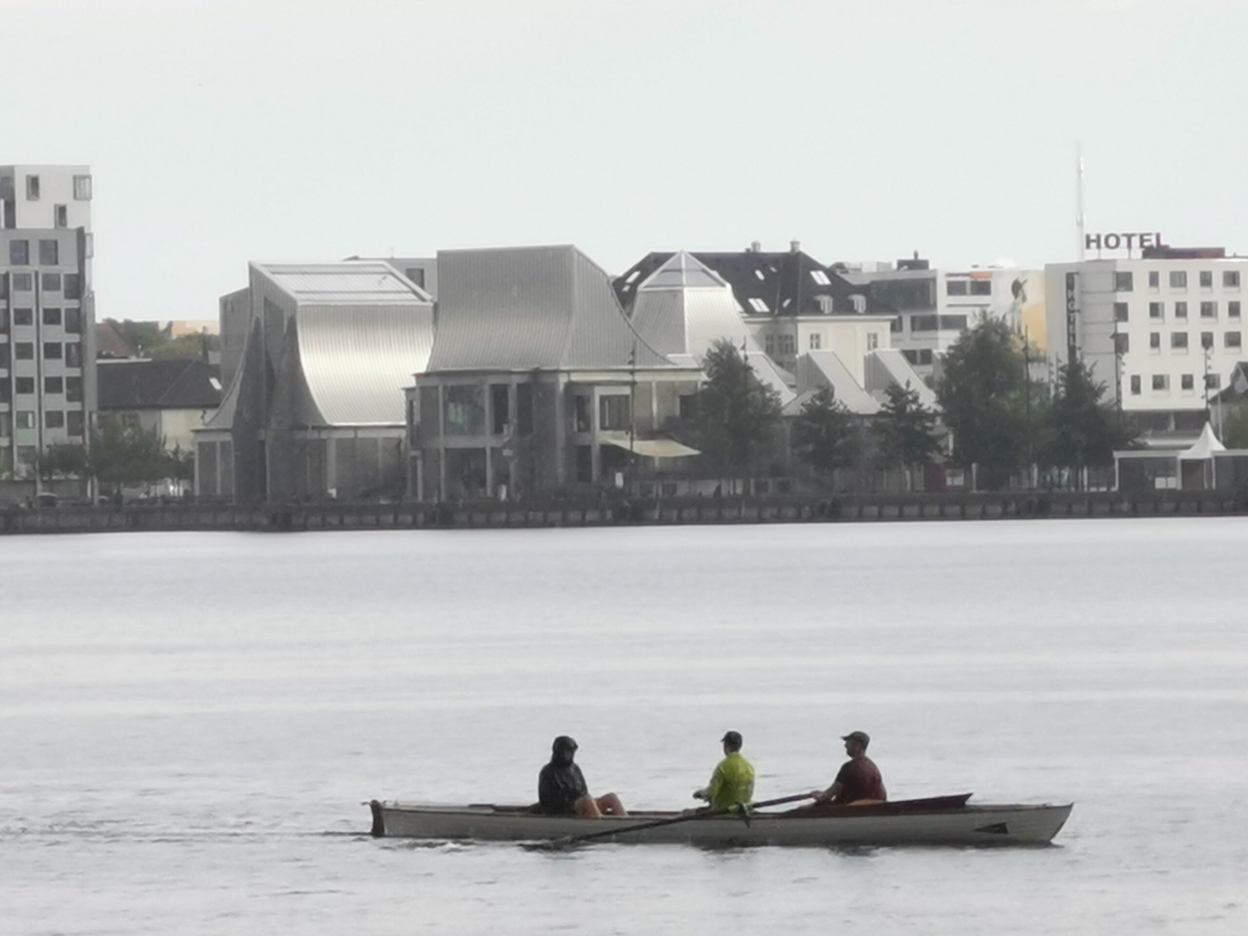 Das Kunsten, ein Museum von Alvar und Elissa Aalto (Fertigstellung 1972), kann man in Aalborg nicht auslassen. Wie die Oper in Oslo ist das Museum eingehüllt in weißen Marmor. Zur Beschreibung der Innenräume reicht ein einziges Wort: Licht. Was die Akustik für einen Konzertsaal ist, ist das Licht für ein Kunstmuseum. Mit diesem Entwurfstitel gewann das Büro 1958 den Wettbewerb. Die Ausstellungssäle haben ein sehr gleichmäßiges Tageslicht. Das wird ohne durchgehende Lichtdecken erreicht. Lichtschaufeln, geschwungene massive Betonschalen, schütten das Licht aus den Oberlichtern über die Exponate. Mein Lieblingswerk diesmal? Die Videoinstallation Working Class Hero – A Portrait of John Lennon – 2006. 25 Fans von John Lennon wurden einzeln eingeladen, die Songs seiner ersten Solo LP a Capella aufzunehmen. Die Aufnahmen wurden später zusammengeschnitten zu einem virtuellen Chor. Diesem Chor von Bildschirmen steht man gegenüber, kann in der Installation umherwandern und jedem Sänger face to face persönlich begegnen. Eine künstlerisch fotogene Installation von Papadam auf Humus gab es danach im Museumsrestaurant.