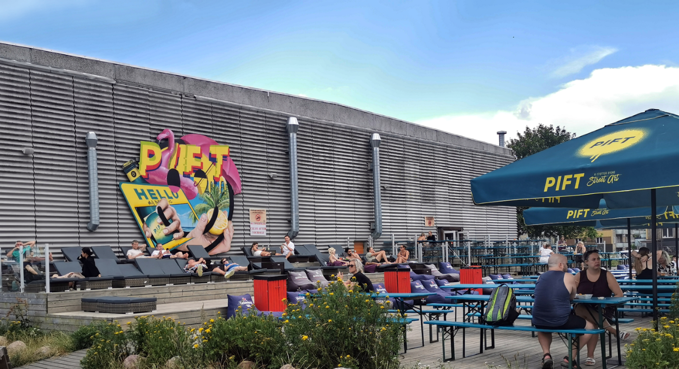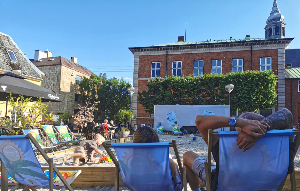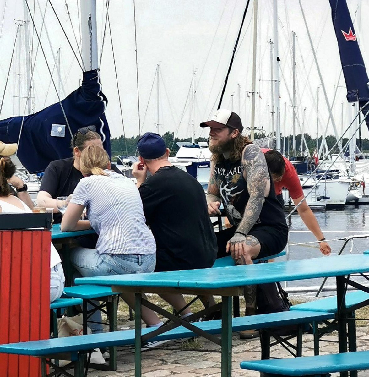 Aalborg strahlte eine unaufgeregte, sommerlich heitere Stimmung aus mit gratis Konzerten in der Innenstadt (Sommer-Lyd), Tanzen (komogdansdanmar) und Chillen an der Hafenpromenade und Open Air Kino in der Altstadt. Überall dabei auch bei Hitze das Streetfood und die dazu passenden, geschmackvoll eingerichteten Hallen, in denen sich alle treffen. Ich habe zu dieser grenzenlosen Vorliebe eine Verdacht und auch das passende Foto dazu. Die frühkindliche Prägung geht so. Der weite geöffnete Kinderwagen wird zentral mit Kind aufgestellt, damit die Grill- und Frittiergerüche ungehindert einziehen können. Niemand kann so ein frühkindliches Erlebnis vergessen und wird dann wahrscheinlich einen Großteil seines späteren Lebens in Streetfoodhallen verbringen. Vorurteil oder Spekulation? Könnte aber auch etwas dran sein. Wir haben uns natürlich dem Spirit der Halle gebeugt. Wer will schon auffallen.