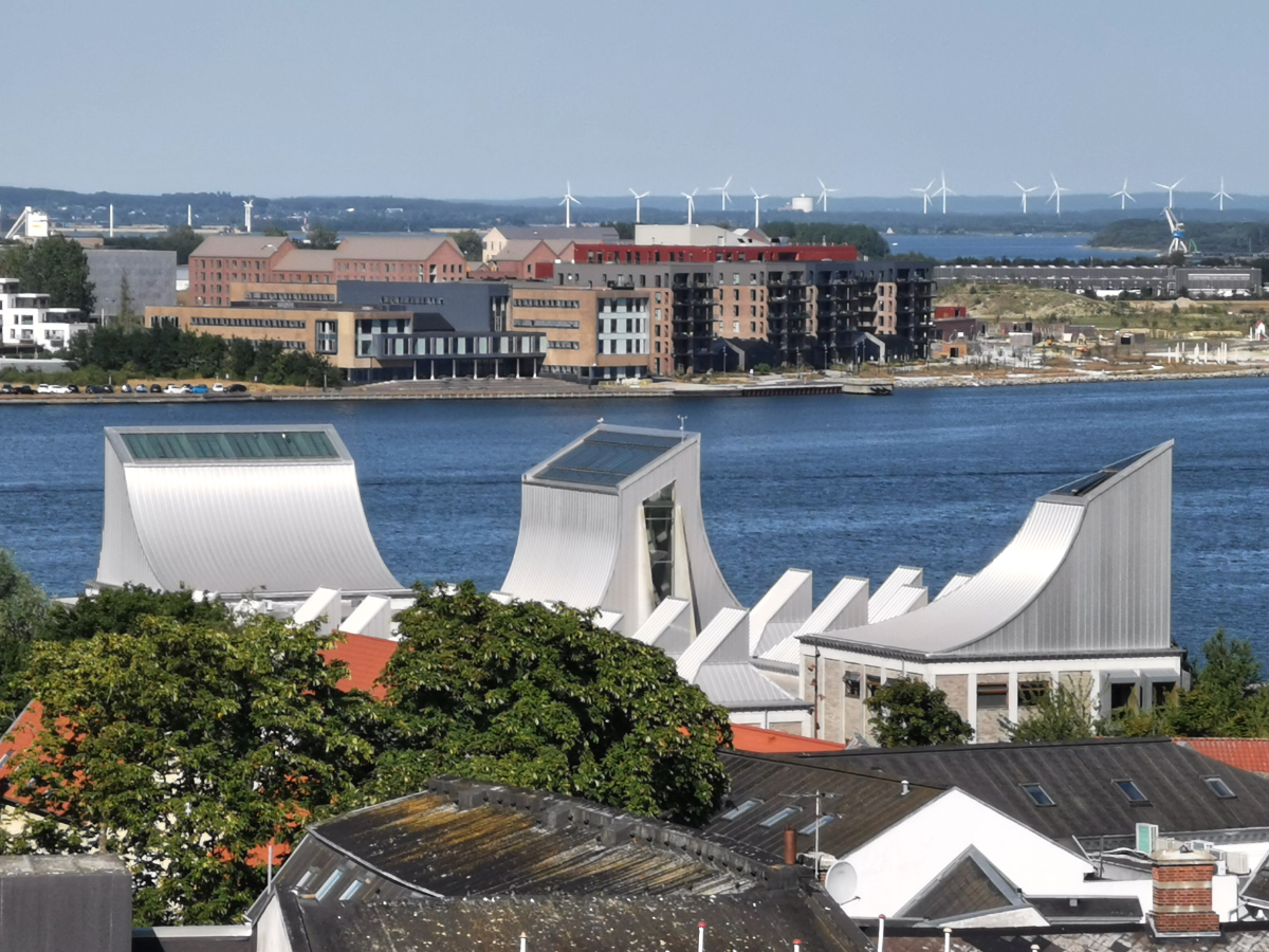 Die selbständige Stadt Nørresundby ist verbunden mit Aalborg über die Limfjordbrücke. Etwa 20 Minuten dauert der Fußweg über die Brücke bis zum Zentrum Aalborg. Das Stadtpanorama immer im Blick. Aalborg ist der wichtigste Hafen am Limfjord, der die Nordsee mit dem Kattegat, der See zwischen Dänemark und Schweden, verbindet. Regelmäßig wird der Straßenverkehr bei Einfahrt der Kreuzfahrtschiffe, Segler und Yachten durch die Schwenkbrücken unterbrochen.